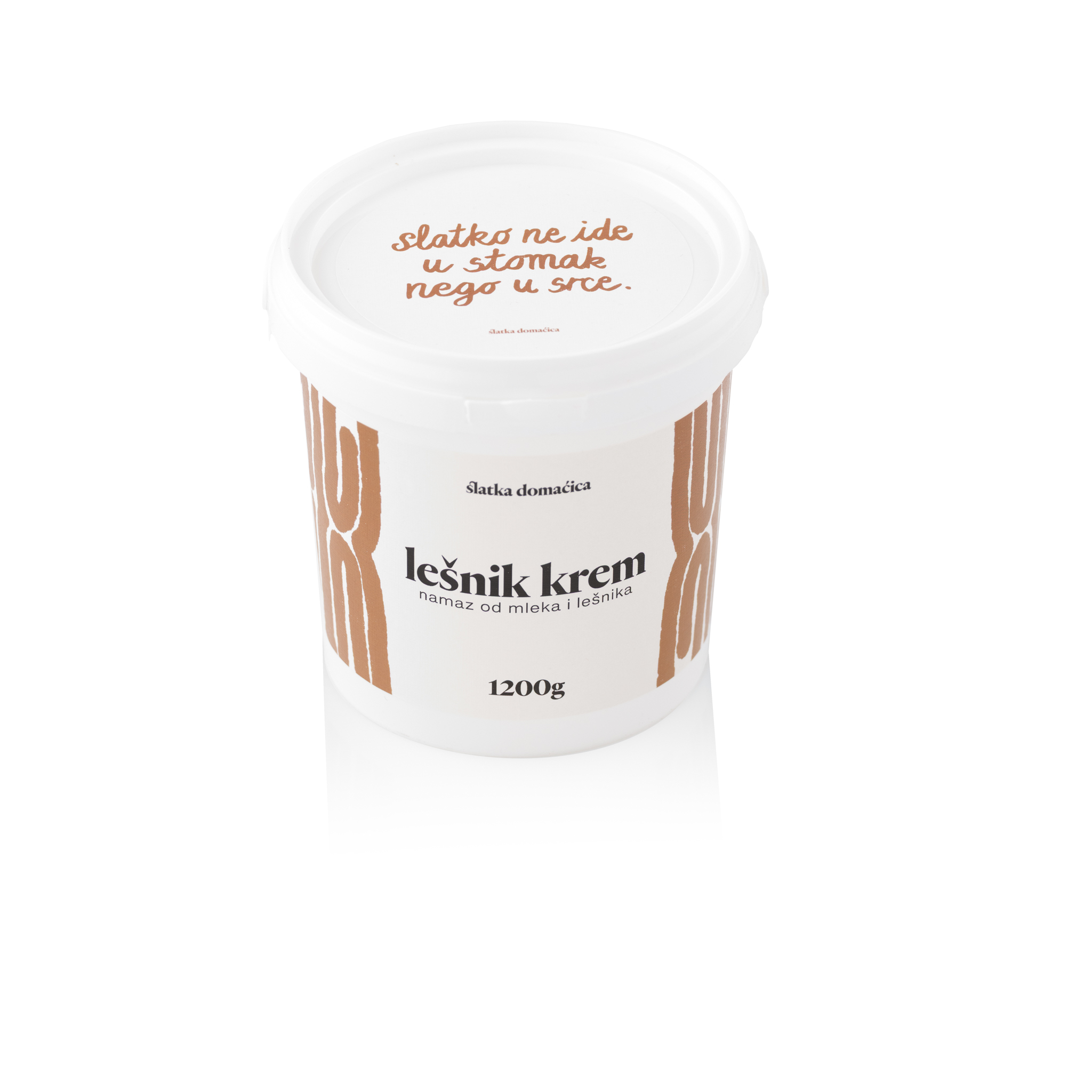 Sladak krem sa mlekom i lešnicima u kantici od 1200g. Idealan kao namaz, dodatak pri spremanju dezerta i na kašiku. Čim ga probate pomislićete na popularnu Bueno čokoaldicu jer je ukus baš takav!